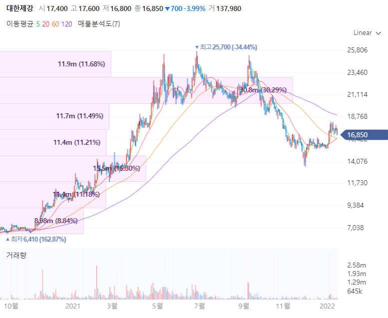 대한제강은 국내 철근시장 점유율 2위 업계로 국내 철근 수요는 연간 800~900만t 수준이었으나 코로나19 이후 부동산 경기 등 수요 증가로 1000만t까지 올라와 최근 철근 신증설을 검토에 들어갔습니다. 대한제강은 가덕도 인근 토지 소유로도 알려지며 부산지역 기반 철강업체로