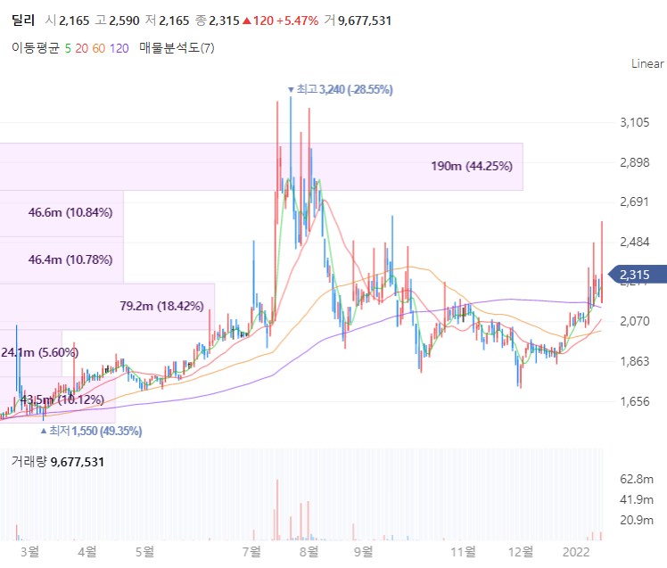 딜리는 일리정공주식회사로 최초 설립됐으며 디지털디스플레이 제조 및 판매를 주 사업으로 영위합니다. 딜리는 동두천과 포천에 토지보유하고 있어 군사지역해제에 따른 개발이익을 누릴 것으로 예상됩니다. 아울러 선진국 위주의 전통 브랜드들과 당사는 그 기술력을 인정받아 메이저 회사들과 지속적인 거래를 유지하며 작년에는 보통 1주당 40원 현금 결산배당을 공시한 바있습니다.