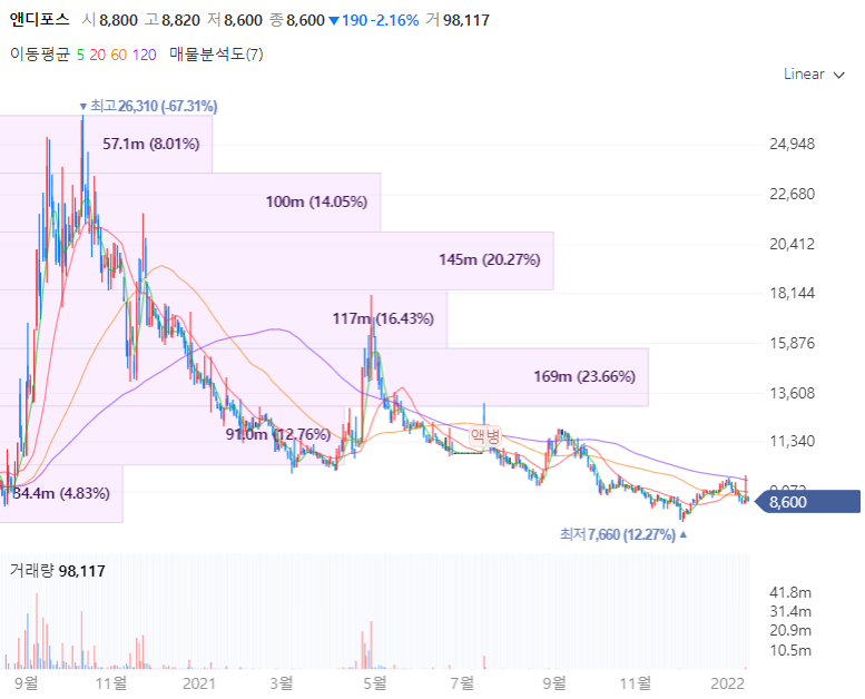 앤디포스는 양면테이프와 윈도우 필름 사업과 바이오사업을 영위하는 기업입니다. 앤디포스의 모바일기기용 양면 테이프 사업은 글로벌 주요 폰 메이커와 거래를 하고 있으며 윈도우 필름은 지벤트 브랜드를 런칭하고 있습니다. 자회사인 큐어바이로테라퓨틱스가 탈모치료제 신약을 개발중으로 서울대학교 약학대학 박사 출신 박민철 대표가 이끌고 있습니다. 최근에는 최근 미국 국립보건원 출신의 안서현 박사를 최고기술책임자(CTO)로 영입하며 글로벌 임상을 준비하고 있습니다. 현재 ARS 플랫폼 탈모 치료제 CBT2004가 비임상 독성테스트를 완료하고 임상 1상을 준비 중입니다.
