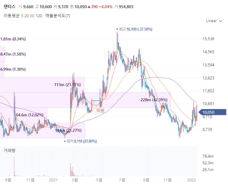 덴티스는 치과용 임플란트 제품을 주력으로 하며 보철, 시술기구를 포함하는 치과용 의료기기와 생체재료, 치과용 3D 프린터 및 수술등을 개발 및 생산판매합니다. 과거 한국전자통신연구원, 경북대병원 모발이식센터와 자동식모기 개발한 바 있으며 모발이식 제품 관련 '다채널 모발이식장치', '모발이식 장치의 니들 유닛' 특허보유합니다. 덴티스는 지난 9월 공식 출시한 치과용 무통마취기 ‘DENOPS’의 미국 식품의약국(FDA) 제품 등록을 완료하며 미국 진출을 가속화하고 있으며 또한 미국의 GDIA(글로벌 덴탈 임플란트 아카데미)를 통한 온라인 외 오프라인 임상교육 프로그램들을 다양하게 기획해 개최하는 등 활발히 사업을 확장하고 있습니다.
