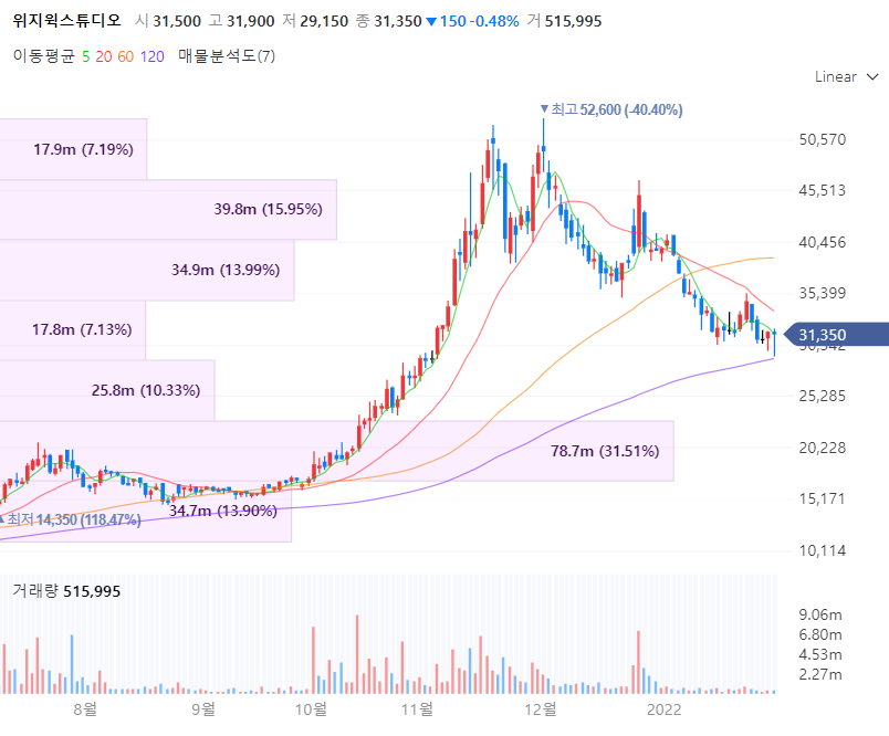 위지윅스튜디오는 CG/VFX 기술을 기반으로 한 서비스를 제공하고 있으며 영화, 드라마 등에 대한 영상기술 제작뿐만 아니라 뉴미디어 콘텐츠에 대한 영상 기획 및 제작 전문업체입니다. 위지윅스튜디오는 모회사 컴투스와 함께 아티스트컴퍼니 인수한 바 있습니다. 동사의 자회사 ‘엔피’, ‘YG엔터테인먼트’, ‘네이버’, ‘넥슨’과 함께 설립한 합작법인에 총 150억을 출자하며 국내 최대 규모 실감형 디지털미디어센터를 조성에 착수하며 사업영역을 확장하고 있습니다.