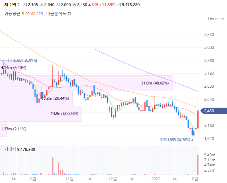 안녕하세요. 오늘은 제주맥주 보해양조 하이트진로 무학 국순당 등 주류 관련주를 살펴보겠습니다. 지난 2월초에 하이트진로의 소주가격 인상 소문이 퍼지면서 주류 업계 매출에 대한 수혜가 예상되며 주류 관련주가 부각받았습니다. 여러 방면에서 실제 원자재 가격이 많이 오르면서 높아진 비용 부담을 소비자에게 전가할 수 있다는 이야기가 나오고 있습니다.