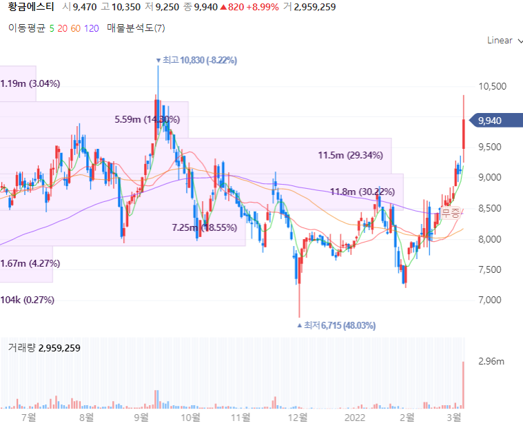 황금에스티는 스테인리스 열연 및 냉연 판매업을 영위하는 회사로 스테인리스 코일을 구성하는 스테인리스 강 가격이 원재료인 니켈 가격과 연동되어 가격 상승시 매출 및 수익성이 개선되어 수혜를 받습니다. 황금에스티는 일반강에 비하여 물, 공기, 화학약품 등에 대하여 반영구적인 수명을 지니며 인장강도의 팽창계수 등이 우수한 합금강을 제조합니다.