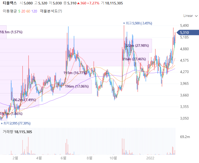 티플랙스는 스테인리스 봉강 절삭가공, 후판 전문업체로 세아창원특수강으로부터 원재료인 스테인리스 봉강을 안정적으로 조달받아, 기계, 선박, 플랜트, 반도체 등 전방산업에 필요한 부품소재를 공급합니다. 티플랙스는 국내 유일 원전 밸브용 소재 공급기업으로 지난해 4분기 실적을 살펴보면 매출액 570억원, 영업이익 56억원으로 전년 동기 대비 각 73.3%, 250.0% 크게 상승했습니다. 특히 니켈 가격 상승이 스테인리스 판매가격 인상으로 이어지며 실적 호조세를 보입니다.