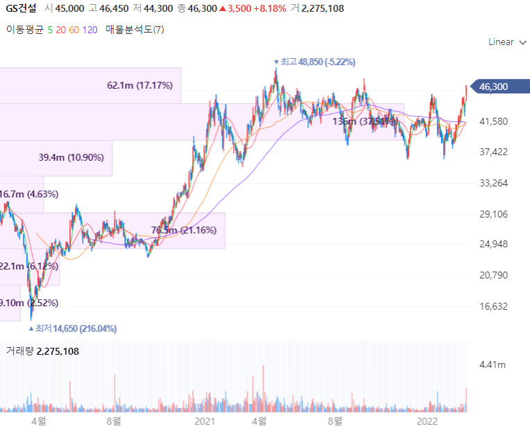 GS건설은 아파트 브래드 평판 1위입지가 탄탄한 회사로 XI 하이엔드 시리즈를 바탕으로 정비사업 규제 완화에 최대 수혜건설주로 분류됩니다. 증권업계에 따르면 올해 GS건설의 매출액은 전년 대비 5.6% 증가한 9조 5000억원, 영업이익도 전년 대비 34.6% 증가한 8691억원을 달성할 것으로 전망합니다. 동사는 보령·삼척·통영·인천 등 다수의 국내 LNG 수입터미널과 바레인 및 태국 PTT LNG 수입터미널 등에서 실적을 쌓는 등 터미널 용량에 따른 맞춤 설계가 가능하며 관련 특허를 보유하며 LNG 수입터미널 부문에서도 사업 경쟁력을 강화중입니다.