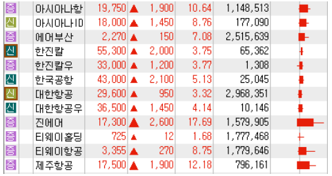 항공주 대한항공 아시아나항공 에어부산 티웨이항공 제주항공 등 ▷항공주 대한항공 아시아나항공 에어부산 티웨이항공 제주항공 등