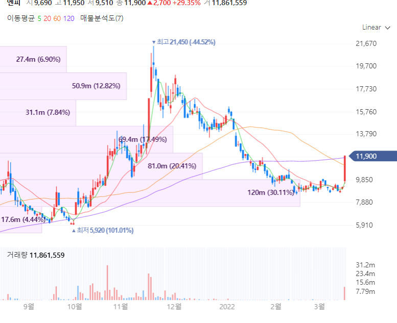 엔피는 21년 8월 20일 삼성스팩2호와 합병하여 상장했으며 판컴서울을 시작으로 광고콘텐츠 기획 및 제작 솔루션을 보유한 콘텐츠 크리에이티브 전문 기업입니다. 엔피의 사업부문은 브랜드 경험에 따라 장소와 광고의 형태에 따라 오프라인 BE, 온라인 BE, XR 콘텐츠 3가지로 나뉩니다. 특히 메타버스와 연계할 수 있는 혼합현실 기술력이 뛰어납니다. 동사의 실적을 보면 연결 기준 지난해 매출액은 10% 증가해 249억원, 영업이익은 9억원을 기록했습니다.