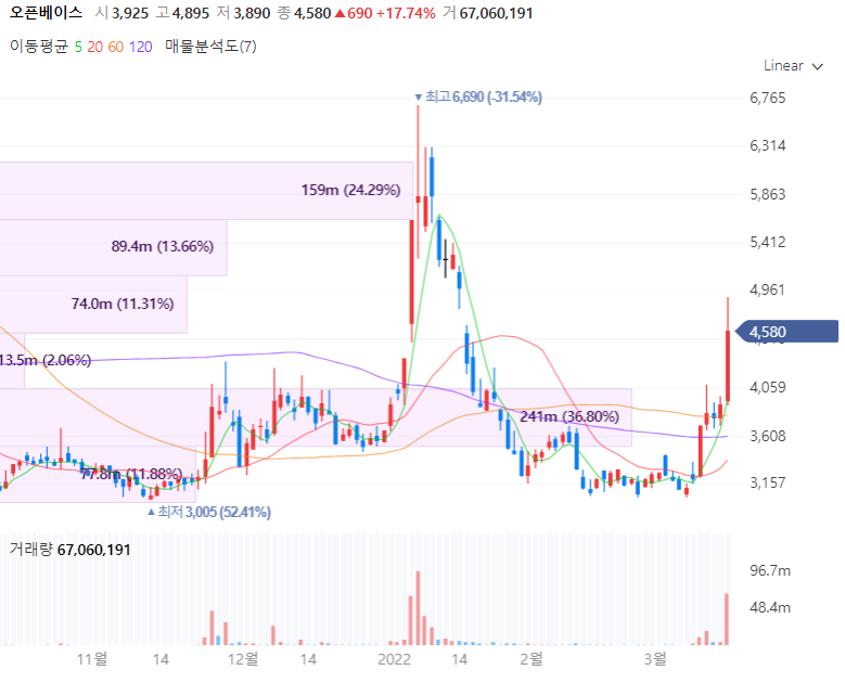 오픈베이스는 각종 컴퓨터 및 관련 기자재 제조 및 각종 컴퓨터 통신장비, 소프트웨어 개발업 등을 영위하며 스위치 제품군을 생산하는 네트워킹 솔루션, 스토리지 솔루션 사업이 대표적입니다. 아울러 오픈베이스는 클라우드 보안 사업을 영위하는 데이타솔루션을 종속회사로 두며, 동사의 작년 실적을 보면 연결 기준 영업이익이 54억원, 매출액은 1759억, 당기순이익 50억으로 각각 전년 대비 47.5%, 13%, 91.3% 대폭 상승했습니다.