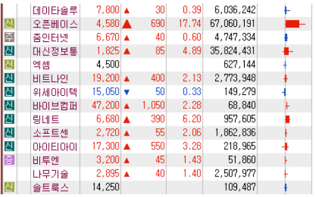 안녕하세요. 오늘은 오픈베이스 데이타솔루션 대신정보통신 비트나인 소프트센 등 빅데이터 관련주를 살펴보겠습니다. 새로운 대통령의 정책 언급 중 하나가 디지털 정부 플랫폼을 만든느 것으로 인공지능, 빅데이터 처리 업체들이 부각됩니다. 아울러 여기에 삼성이 AI 분야에서 인수합병을 추진할 것이란 전망에 빅데이터 관련주들이 강세입니다.