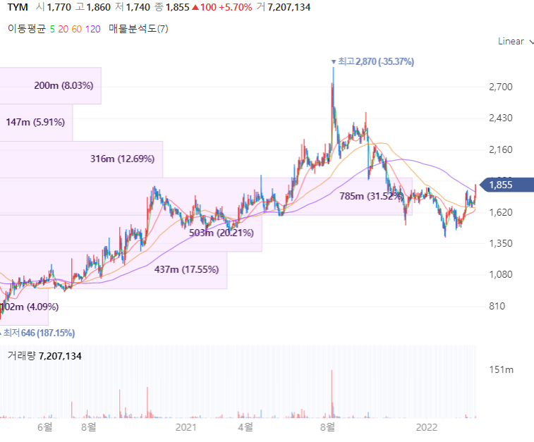 TYM은 이앙기, 트랙터, 콤바인 등의 농기계사업 및 담배필터사업을 주로 영위하며 자회사 TYMICT를 통해 자율주행 트랙터 기술 개발, ICT 적용 제품 등을 생산합니다. TYM은 지난 17일 스마트폰으로 트랙터를 원격제어하고 실시간으로 관리할 수 있는 서비스를 출시하며 멀리서도 트랙터의 시동을 걸거나 끌 수 있고, 시동 유지 시간도 조절할 수 있습니다. 아울러 동사는 빅데이터 기반의 인공지능 기술을 활용해 최적의 작업 가이드를 제공하고, 작물 수확량 예측 등 정밀농업 분야로 확장을 시도중입니다.