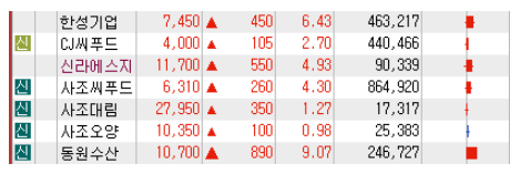 수산물 관련주 한성기업 사조씨푸드 동원수산 CJ씨푸드 사조오양 등
