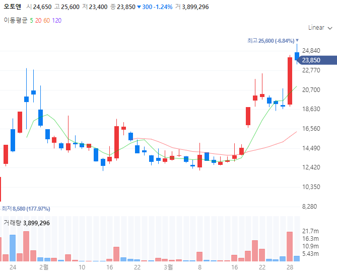 오토앤은 자동차에 필요한 모든 상품과 서비스를 제공하는 모빌리티 라이프 플랫폼 전문 기업으로 현대자동차그룹 사내벤처로 시작해 올해 1월 코스닥에 상장했습니다. 오토앤의 랫폼은 B2C/B2B 채널로 구성되어 있으며, B2C 채널에는 현대/기아 멤버스 몰이, B2B 채널에는 현대/기아 정비MRO몰 등이 있습니다.