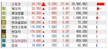 중고차 관련주 오토앤 롯데렌탈 현대차 케이카 SK렌터카 등 반응형'제태크 및 경제정보 > 주식소식' 카테고리의 다른 글