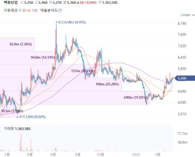 백광산업은 전해조 설비를 통해 가성소다, 염산, 액체염소 등의 무기화학제품과 솔비톨을 제조하는 전문 기업으로 화공약품을 주 사업으로 영위합니다. 백광산업은 의료용 마취제 및 반도체, 디스플레이 생산공정에 주로 사용되는 소재인 아산화질소 생산설비 준비를 2019년에 완료 하며 사업을 진행합니다. 동사는 중국기업이 타격을 받는 동안 국내 석유화학 기업 반사이익이 전망되며 지난 11월 생산성 향상 및 비용절감을 위한 설비 교체를 위해 188억원을 투자해 여수공장 설비를 교체한 바 있습니다.
