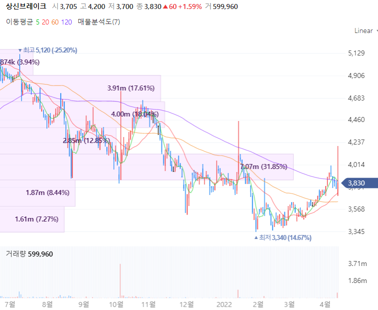 상신브레이크는 자동차부품 중 브레이크 관련 LINING, PAD, SHOE 등을 제조해 완성차 업체에 공급하는 전문 기업입니다. 상신브레이크의 사업은 브레이크 PAD 등을 조립하여 완성차 업체에 납품하는 BREAK ASSEMLY 사업과 세탁기 브레이크를 제조하는 마찰재로 크게 구분되며 자회사인 상신이엔즈를 통해 마찰재 전용 설비를 판매합니다. 동사의 실적을 보면 연결기준 작년 영업이익이 122억원, 같은 기간 매출액은 3970억2306만원을 기록하며 각각 전년 대비 55.3%, 13.7% 증가했습니다.