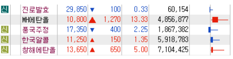 에탄올 관련주 MH에탄올 한국알콜 풍국주정 창해에탄올 진로발효 등 반응형'제태크 및 경제정보 > 주식소식' 카테고리의 다른 글