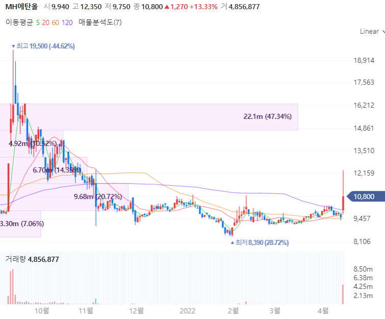 안녕하세요. 오늘은 MH에탄올 한국알콜 풍국주정 창해에탄올 진로발효 등 에탄올 관련주를 살펴보겠습니다. 최근 바이든 정부에서 중간선거 지지율을 고려하며 유가 급등에 따른 물가 안정 목표를 위해 에탄올을 함유량을 높인 휘발유 거래를 한시적으로 허용할 방침으로 에탄올 관련주가 강세입니다.