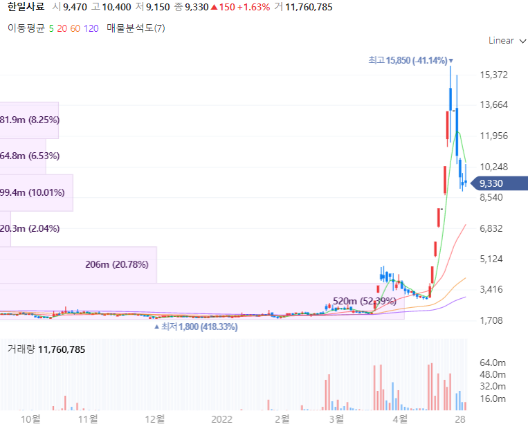 한일사료는 배합사료 생산, 공급을 주 사업으로 영위하며 2020년 전체 사료회사 생산수량기준약 16위의 중견기업입니다. 한일사료는 독자적으로 연구개발하여 사료업계 최초로 벤처인증을 획득한 매직사료 브랜드를 보유하며 산란계 시장에서 경쟁우위를 보입니다. 아울러 세계비료가격지수 2010년을 기준으로 100으로 할 때 올해 3월 237로나와 2.37배 상승하는 등 급격하게 가격이 높아지며 실적 수혜가 전망됩니다.