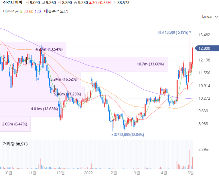 진성티이씨는 건설중장비 부품 제조를 영위할 목적으로 설립되어 건설중장비의 하부주행체부품 시장에서 롤러류를 한궤도를 받쳐주는 하부주행체 부품을 전문으로 생산합니다. 진성티이씨는 상하부롤러, Front Idler 등을 두산인프라코어, 캐터필라 등을 고객사로 보유합니다. 동사는 국내 1곳 및 미국 3곳, 중국 2곳, 일본 1곳의 회사를 두고 있습니다. 증권가에 따르면 동사의 1분기 매출액과 영업이익은 각각 1255억 원, 96억 원으로 전년 대비 16%, 24% 증가할 것으로 전망됩니다.