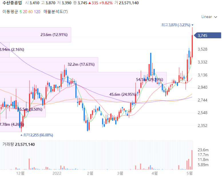 수산중공업은 건설중장비 및 특수차량의 국산화 전문기업으로 유압브레이커, 유압드릴, 크레인 등 건설장비 제조합니다. 수산중공업은 유압브레이카와 트럭크레인을 비롯하여 수많은 특수차량을 국산화에 성공하며 매출을 올리고 기술력을 인정받으며 사업을 영위합니다. 동사의 실적을 살펴보면 지난해 매출 2529억 9240만원으로 영업이익 145억2921만원을 기록했으며 전년 대비 각각 83.6%, 107.5% 크게 상승했습니다.