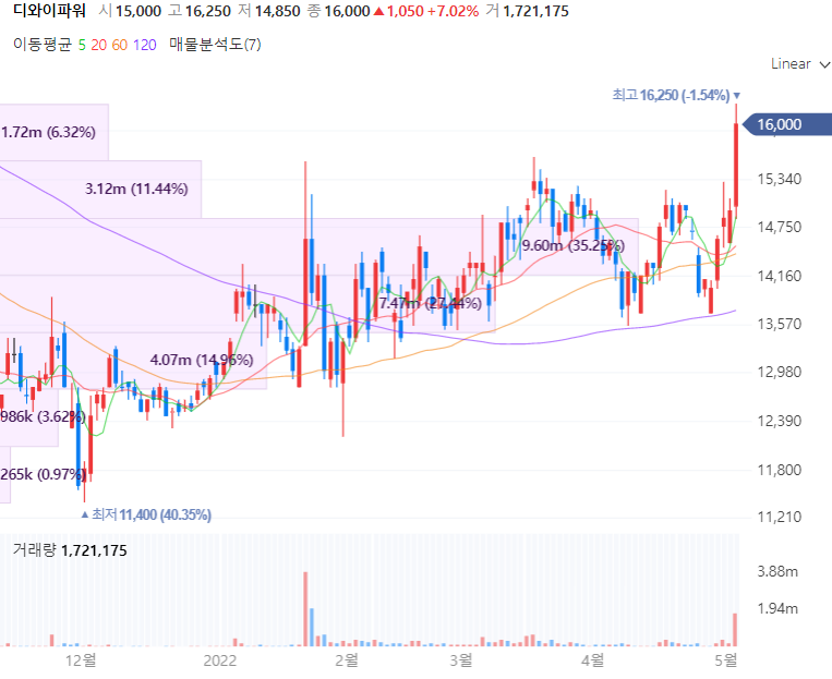 디와이파워는 건설기계장비에 적용되는 유압실린더에 대한 제조 및 판매를 전문으로 담당하며 굴삭기, 지게차 등에 쓰이는 제품을 생산합니다. 디와이파워의 제품은 주로 1,2분기가 성수기 구조로 판매되며 작년 영업이익은 421억5927만원으로 전년대비 18.6% 증가, 매출액은 4371억6157만원으로 43.4% 늘었으며 지난해 2.4% 비율로 배당을 실시했습니다.