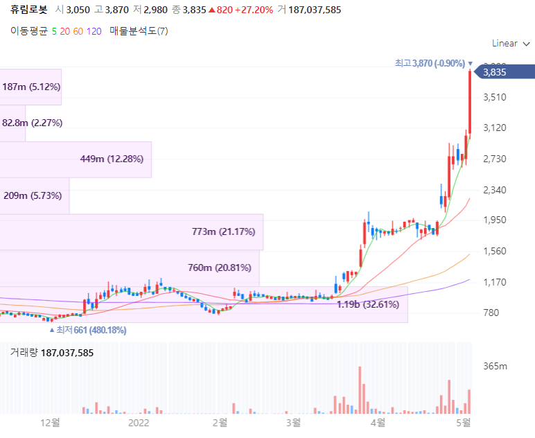 안녕하세요. 오늘은 휴림로봇 로보로보 유진로봇 스맥 포메탈 등 로봇 관련주를 살펴보겠습니다. 삼성이 로봇 분야에 대한 조직부서를 강화하면서 여러 기업을 대상으로 M&A 기대감이 높아집니다. 실제 현대차는 보스턴다이내믹스를 인수한 바 있고 LG에서는 로보티즈, 로보스타 등 연이어 로봇 관련 산업에 적극 투자하고 있습니다. 차기 정부에서 과학기술 관련 정책으로 로봇이 언급 및 강조되면서 로봇 관련주가 연일 강세입니다.
