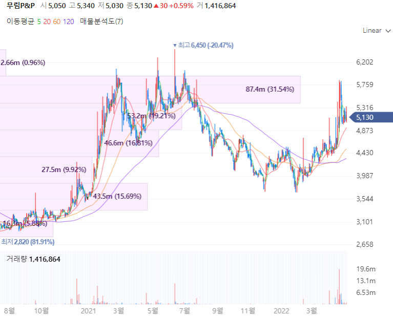 무림P&P는 표백화학펄프 생산업체로 펄프에서 표백화학펄프 제조와 판매를 하며 제지 부문에서는 아트지와 백상지 등 인쇄용지 제조 및 판매를 담당합니다. 무림P&P는 무림인터내셔널을 통하여 인도네시아 지역 펄프생산용 조림투자 사업도 진행으로 알려집니다. 동사는 지난 3월 최근 매출액 대비 13.5%인 712억4770만8000원 규모로 계열회사인 무림페이퍼, 무림SP에 규모 활엽수 HW-BKP(표백화학펄프) 공급계약을 체결하는등 활발히 사업중입니다. 실적을 살펴보면 지난해 연결 기준 영업이익이 293억8671만원으로 전년 동기 대비 365.4% 증가, 매출액은 6136억9911만원을 기록하며 전년보다 16.3% 상승했습니다.