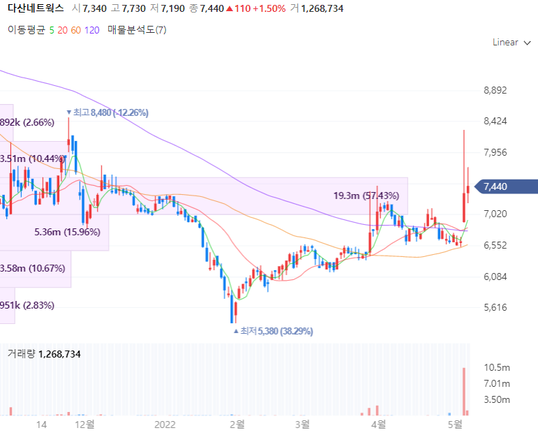 다산네트웍슨느 유무선 인터넷 서비스를 위한 통신장비를 개발 공급 회사로 주요 제품군은 이더넷 스위치, FTTH, 와이파이 장비 및 SDN 등으로 이동통신 주요 솔루션 및 시스템을 납품합니다. 지난 4월 28일 술루에타가 계열사인 다산네트웍스의 지분 50억4321만원 규모를 추가로 취득하는 소식이 전해졌으며 지난 1월에는 동사에서 과학기술정보통신부가 주관한 차세대 네트워크 발전 전략수립 토론회가 열리는 등 5G 통신장비 관련 대장주 흐름이 유지됩니다.