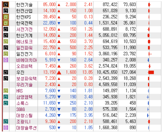 원자력 관련주 보성파워텍 우리기술 우진 오르비텍 한신기계 등