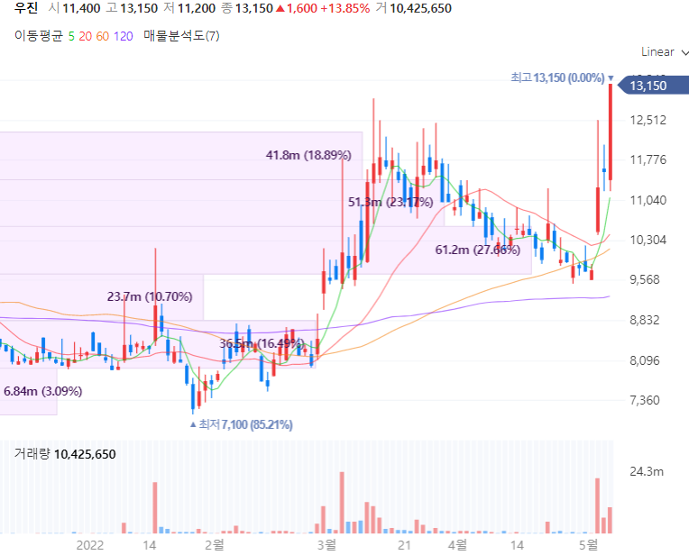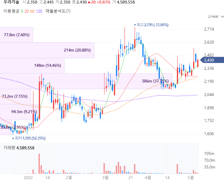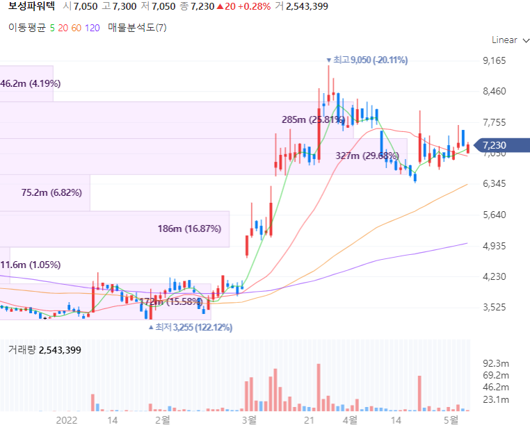 보성파워텍은 전력산업 기자재 생산 전문업체로 설립되어 가스개폐기, 주상변압기, 송전철탑, 발전소, 변전소용 철구조물 등을 전문 생산합니다. 보성파워텍의 주가를 살펴보면 최근 원자재 가격상승에서 우라늄 가격 급등에 연동해 주가 상승세가 강합니다. 실적을 보면 개별기준 매출액은 전년 동기 대비 16.4% 줄어든 685억3902만원, 영업손실이 14억8933만원을 기록하며 전년 동기 대비 적자전환했습니다.