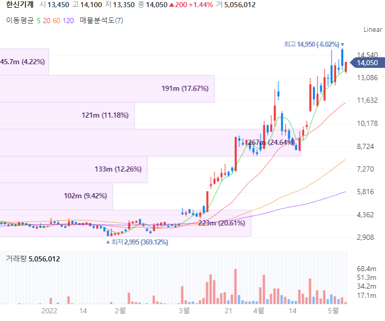 한신기계는 한신기계제작소로 설립된 후 피스톤 타입과 스크루 타입 등 전 기종을 생산해 공급하는 국내 유일 업체로 성장하며 2020년 연결 매출액 기준 공기압축기 업계 1위로 집계됩니다. 한신기계는 공기압축기 전문 업체로 원자력발전소에 사용되는 공기압축기를 제조 공급합니다. 동사는 산업자동화업체, 정유업체, 제철업체 등을 주요 고객으로 두고 있습니다. 아울러 지난 4월 생산설비 증설을 위한 부지확보와 신제품 개발 및 신사업 투자를 위해 자사주를 대량 매도하기도 했습니다.