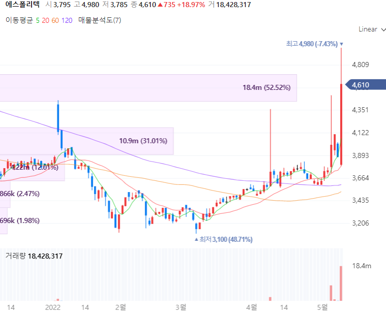 안녕하세요. 오늘은 에스폴리텍 세림B&G 세우글로벌 에코플라스틱 엔피케이 등 플라스틱 관련주를 살펴보겠습니다. 5월 10일 윤석열 정부가 공식적으로 취임식을 가지며 국정과제 중 하나로 생분해성플라스틱 관련 기준을 마련하는 이야기가 정책으로 나오며 플라스틱 관련주가 강세입니다.