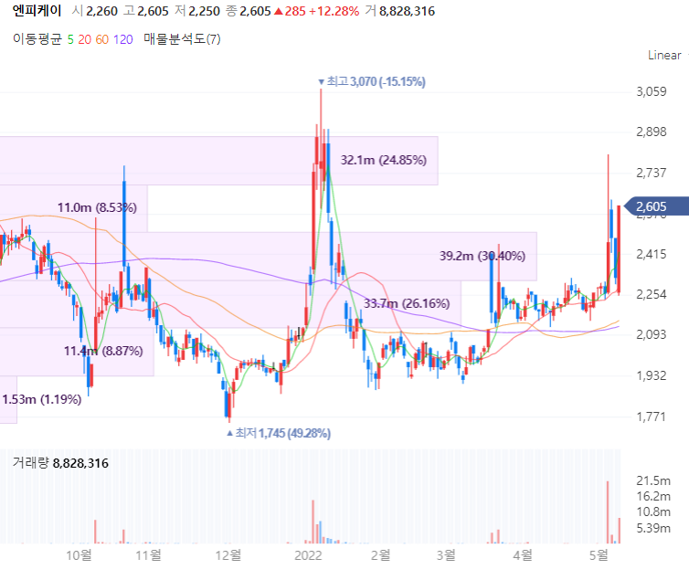 엔피케이는 플라스틱 착색제 생산 사업을 영위하며 자회사와 함께 컴파운드 및 마스터배치를 생산하는 합성수지사업부문과 자동차 내외장재 부품사업부문도 진행합니다. 엔피케이의 실적을 살펴보면 연결 기준 지난해 영업이익이 24억원으로 전년 대비 362.7% 증가, 매출액은 4.8% 늘어난 646억원을 기록했으며 당기순이익은 20억원으로 전년 대비 흑자전환에 성공했습니다. 동사는 수지사업부문에서 국내 및 해외 유화사로부터 원재료를 조달하여 제품을 생산하며 납품중입니다.