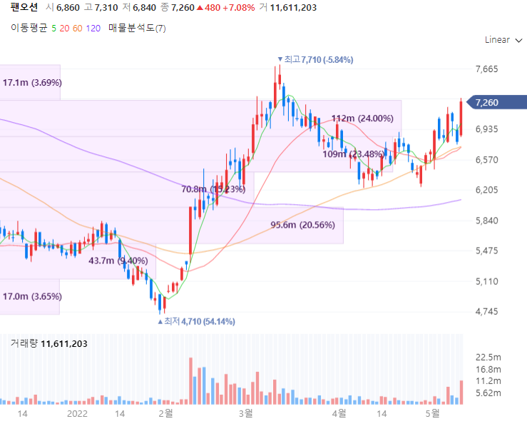 팬오션은 국내 대표 벌크선사로 철광석,석탄,곡물 등 운송하는 벌크선 부문이 매출에서 큰 비중을 차지하며 그 외 탱커선, LNG운송 서비스 등 사업을 영위합니다. 팬오션의 실적을 살펴보면 올해 1분기 연결기준 영업이익이 1691억원으로 전년 동기 대비 245.8% 증가, 매출액은 111.9% 늘어난 1조4409억원, 당기순이익은 198.4% 증가한 1629억원으로 컨센서스를 크게 상회한 어닝서프라이즈를 기록했습니다. 동사의 주요 매출처는 한국중부발전, 한국남부발전, 한국남동발전, 현대제철, VALE, 포스코, SUZANO PAPEL E CELULOSE 등이 있습니다.