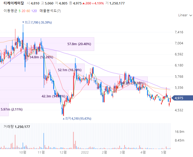 티케이케미칼은 합성섬유 및 그 원료와 관련된 화학제품의 제조 가공 판매, 도소매 및 수출입을 목적으로 설립된 SM그룹 계열회사로 대표적인 페트 칩 메이커로 보틀용 페트칩 매출이 전체 매출의 40% 이상 차지합니다. 티케이케미칼은 롤투롤, 금속박막, 토토 에칭의 독자적인 기술 공법을 경쟁력으로 하며 SM상선 지분 29.55%, 대한해운 지분 11.8% 보유합니다. 동사의 페트병을 재활용한 재생섬유 등 소재품 양산을 추진한 뒤 성과를 내며 시장 확대가 전망되며 국내 자원순환체계 구축 및 개선을 위해 국내에서 배출된 재활용 페트병을 활용한 재생섬유 양산체제 구축에 노력합니다.