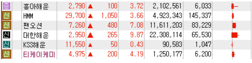 해운주 HMM 흥아해운 팬오션 대한해운 티케이케미칼 등 ▷해운주 HMM 흥아해운 팬오션 대한해운 티케이케미칼 등