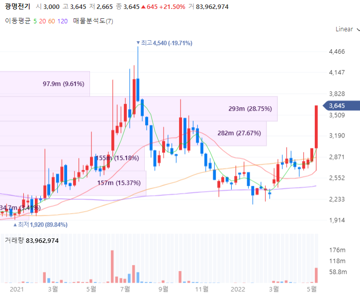 광명전기는 동사와 자회사등을 통해 수배전반, 태양광발전시스템, 임대사업 등의 제조, 판매, 용역 사업등을 영위합니다. 광명전기는 수배전반, 배전 제어장치 등 생산하며 에스제이홀딩스컴퍼니와 71억5000만원 규모의 평택 에스제이 물류센터 신축공사 계약을 맺으며 삼성전자 투자 관련주로 편입됩니다. 지난 13일 업무효율성 증대를 위해 116억원을 투자하여 사옥신축을 결정한 바 있습니다.