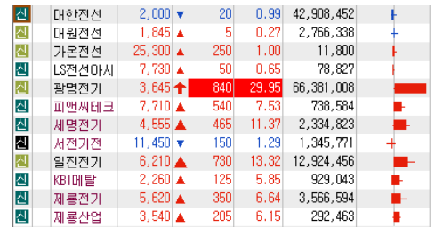 전선 관련주 광명전기 대한전선 세명전기 일진전기 제룡전기 등