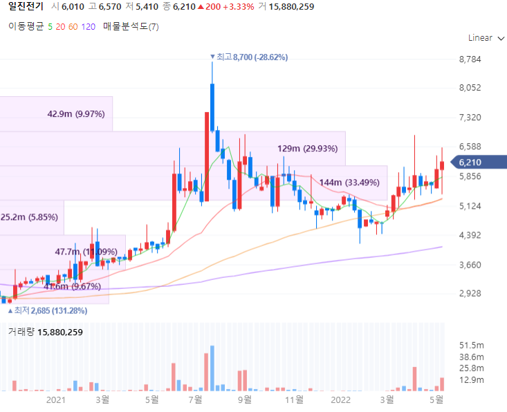 일진전기는 2008년 일진홀딩스로부터 제조사업부문이 인적분할되어 설립된 기업으로 초고압전선, 중고압전선 등 전선과 개폐기 및 변압기 등 전력기기를 전문으로 생산합니다. 일진전기는 국내전선시장중 8% 정도를 차지하며 케이블네트워크를 세계 최고수준으로 제공합니다. 특히 동사의 주식을 일진홀딩스가 50%이상을 보유중이며 PI첨단소재 인수전에 일진그룹 차원에서 같이 부각받고 있습니다.