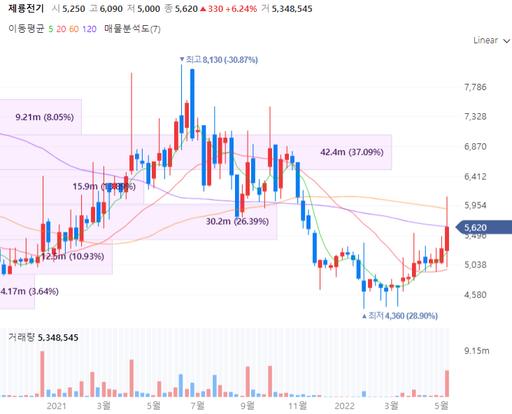 제룡전기는 공공기관 및 아파트 등에 사용되는 아몰퍼스 변압기 제조 및 판매 회사로 변압기, 개폐기, GIS 제조 및 판매에 관한 사업을 진행합니다. 제룡전기의 신규 개발품의 점진적인 증가로 실적이 개선이 전망되며 실제 동사는 3월 64억원 규모, 4월 초에만 52억497만원, 97억원 규모로 미국 업체들과 연달아 공급계약을 맺는등 활발히 사업을 영위하는 중입니다. 전년동기 대비 62.3% 늘어나 당기순이익은 13억2891만원을 기록했습니다.