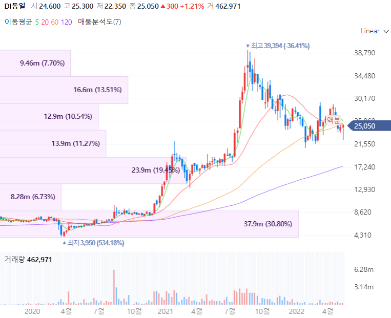 DI동인은 알루미늄 제품 제조업체로 동일알루미늄을 자회사로 두며 이외 종속회사들을 통해 섬유소재, 의류, 알루미늄, 플랜트 및 환경, 가구도소매, 화장품등도 영위합니다. DI동일의 동일알루미늄은 국내 배터리용 알루미늄박 업체 중 가장 큰 규모로 알려지며 베트남과 이집트 등과 시화, 반월, 안산 등에 생산시설을 보유합니다. 동사는 지난 3월 액면가 500원으로 주식 분할을 결정했습니다. 증권가에 따르면 생산라인 증가로 성장세가 가시화 될것으로 목표가를 45000원으로 인상한 바 있습니다.